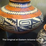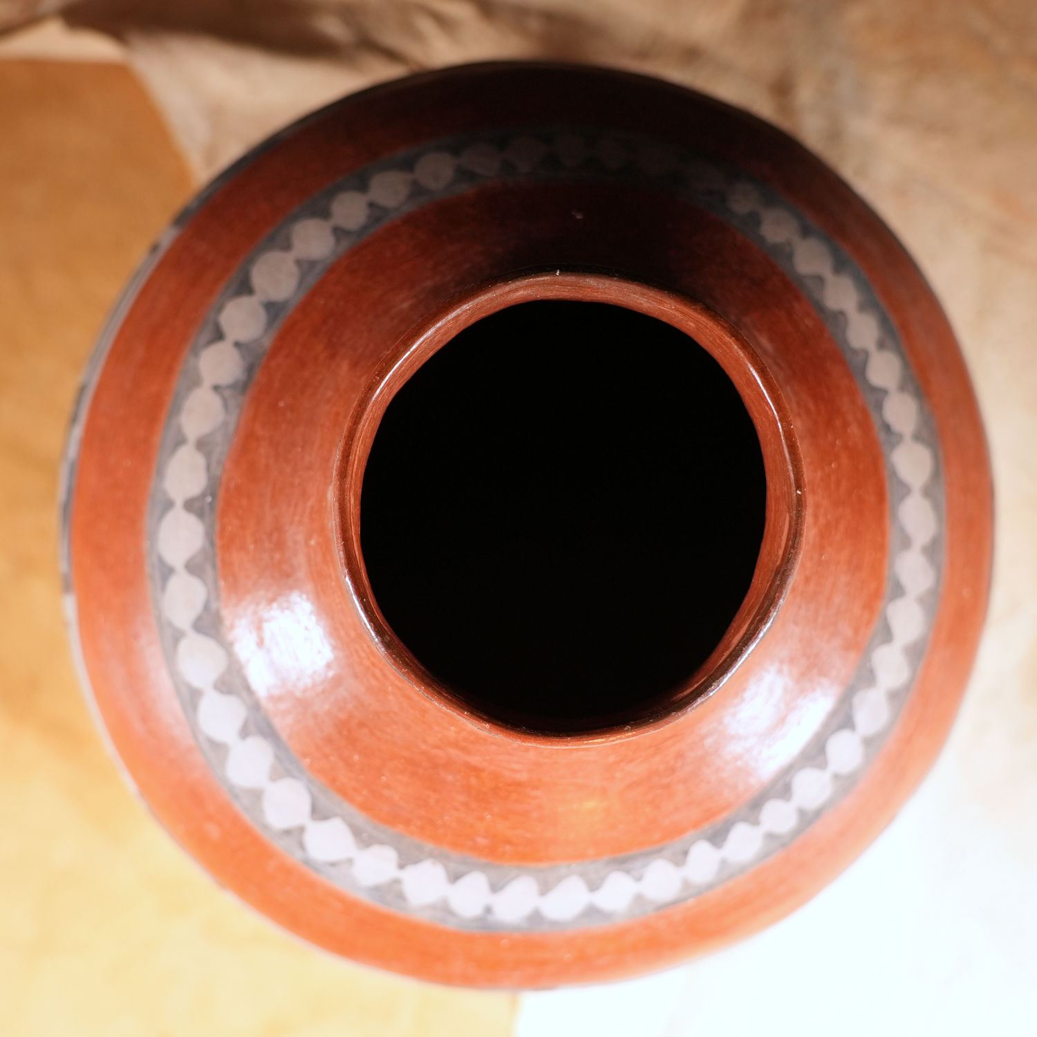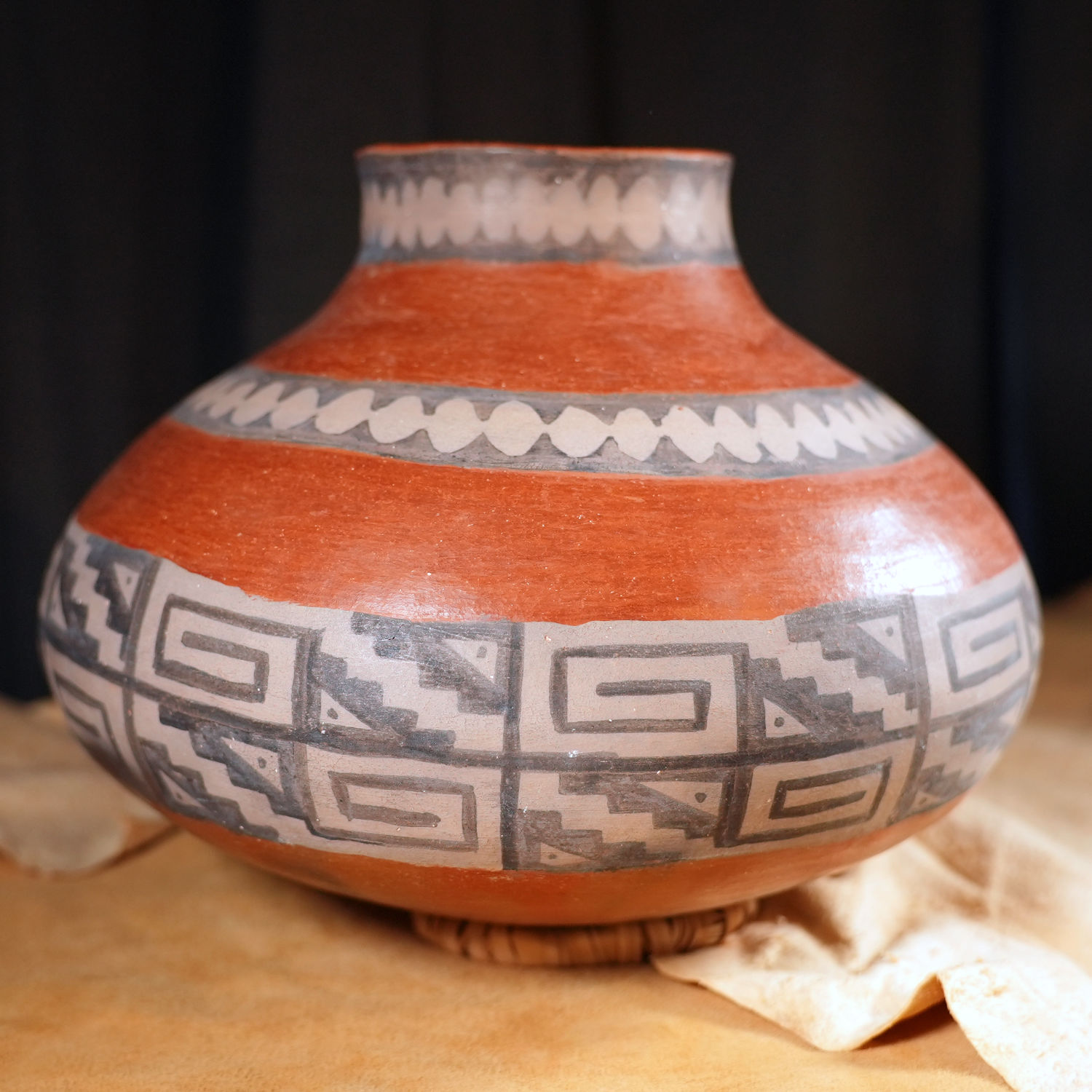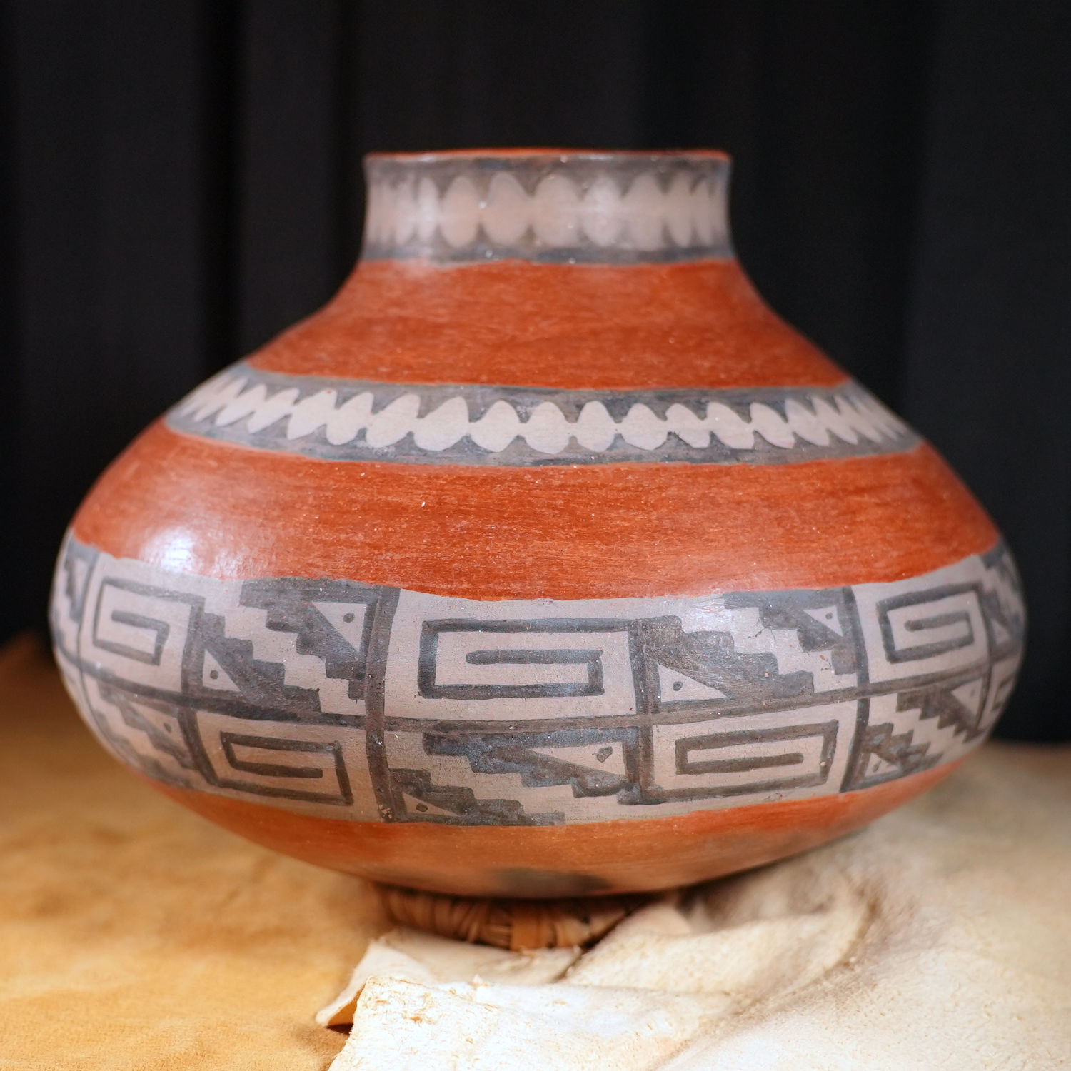 This large pot was made using all wild collected clay, paint and slip, made in the authentic coil and scrape method and fired in an open, outdoor wood fire. As authentic a Salado replica as you will find anywhere. The original is in the “Mills Collection’ at Eastern Arizona College in Thatcher, Arizona.
